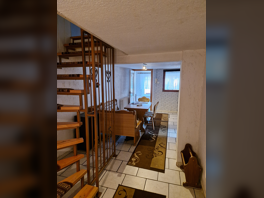 Über die Treppe gelangt man in das Obergeschoss mit dem Schlafzimmer, Kinderzimmer und ein Badezimmer mit Dusche und Badewanne.
